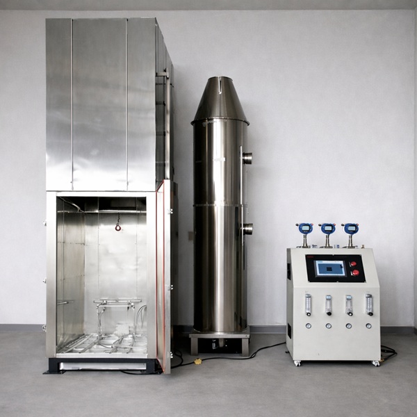 试验箱、电器控制系统、空气源、引燃源流量控制系统(丙烷燃气和空气压缩气体)、钢梯、灭火装置、排放物净化装置等组成。
