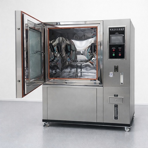 淋雨试验箱:主要用于测试产品在淋雨的气候环境下的贮存,运输和使用时的性能试验,主要用于对电工电子产品,灯具,电柜,电器元件,汽车,摩托车及其零部件等产品在模拟淋雨的气候条件下,对产品的物理以及其它相关性能进行测试,测试后,通过检定来判断产品的性能是否能够达到要求,以便供产品的设计,改进,检定及出厂检验使用。