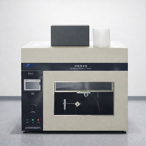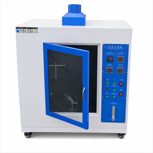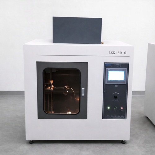 2、针焰试验仪是用规定尺寸 (Φ0.9mm ) 的针状燃烧器,通以特定燃气 ( 丁烷 ) ,以 45°角定时定向施燃试品,视试品是否引燃及持燃时间和燃烧长度来评定设备内部因故障条件造成的小火焰的着火危险性。