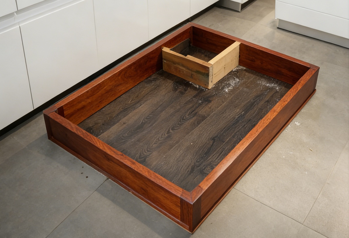 房体测试地板由松木板拼接组成。房体顶部由方块型天花板