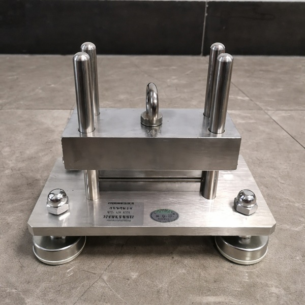 结构及功能:热压缩试验装置由移动压块、固定压块、导轨支架及砝码组成。做电器附件及明装式安装盒的受热耐压试验时,应配合高温箱使用。