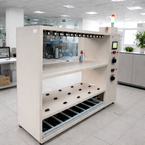 灯具老化测试架符合GB7000.1-2015美国能源之星标准要求,设备具有断路检测、短路检测等故代检测功能,并记录保存故障原因、发生故障时间及已完成的试验次数,同时依据不同的故障产生不同的声光报警。灯具老练测试架
