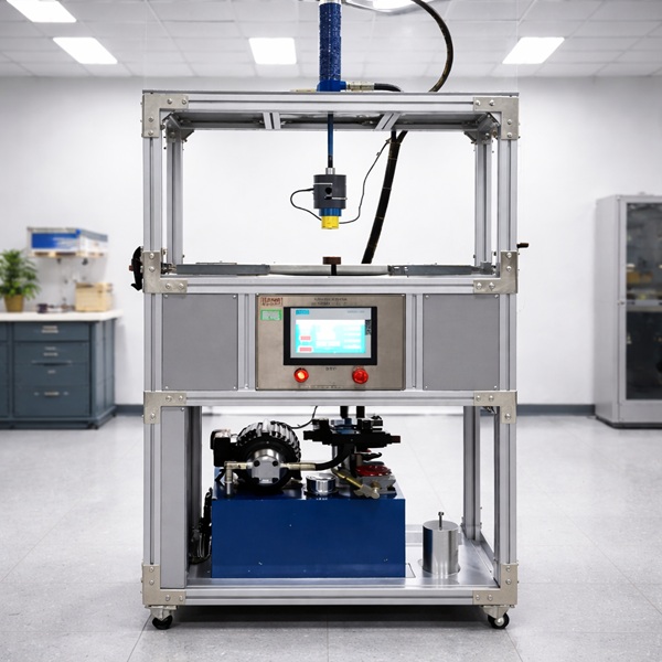 地埋灯耐静负荷和剪力负荷试验机采用电动方式提供稳定安静的恒定压力。按标准要求挤压装置须符合≤5000N/min的压力变化速率、橡皮压头直径要求50mm,肖氏硬度60-70,厚度为50mm;系统采用数控比例,多个高精度压力传感器采样,控制闭合回路。
