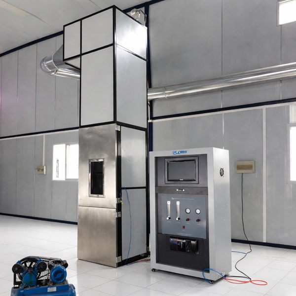 试验箱、电器控制系统、空气源、引燃源流量控制系统(丙烷燃气和空气压缩气体)、钢梯、灭火装置、排放物净化装置等组成。