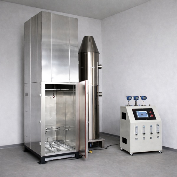 试验箱、电器控制系统、空气源、引燃源流量控制系统(丙烷燃气和空气压缩气体)、钢梯、灭火装置、排放物净化装置等组成。