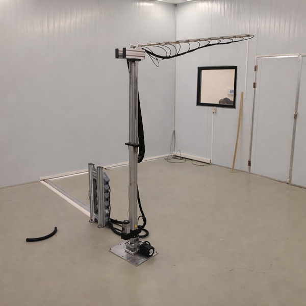 美标DOE吊扇风量测试装置依据DOE 10 CFR Appendix U to subpart B of part 430 -2018年新标准条款要求里面规定的实验室要求建造,将满足吊扇标准的测试要求。