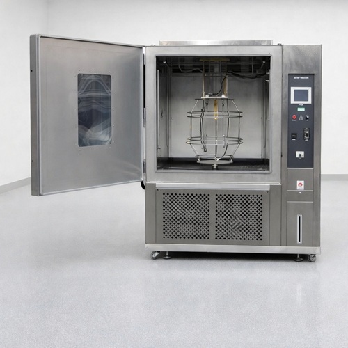 通过将被测材料暴露于受控高温下光照与水份的交变回圈中,对材料进行测试.它用氙灯灯管模拟阳光的辐射作用,用凝结水和喷水来模拟露水和雨水本仪器只需要几天或几个星期的时间,就可以再现在室外需要几个月甚.至几年的时间才会发生的环境中的工况或各零件部件的老化等试验室损伤,其中包括褪色、颜色变化、破裂、裂纹、起皱、起泡、脆化、强度降低、氧化等。