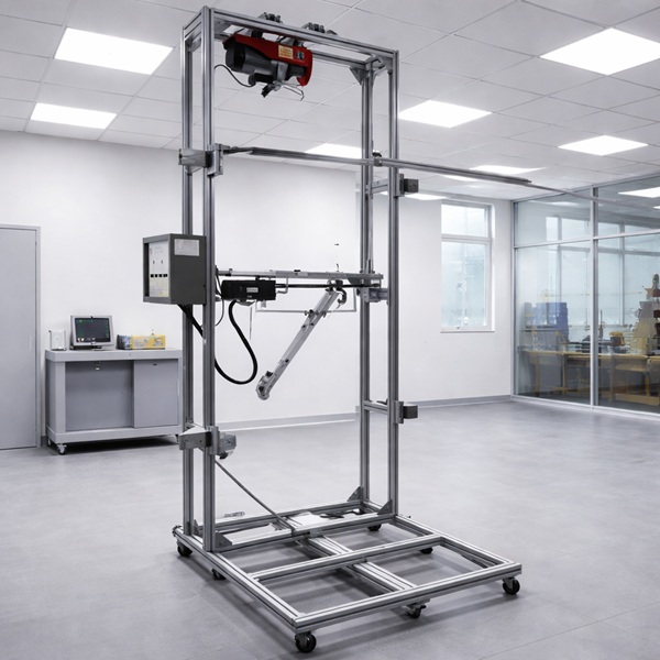 底座采用高强度铝型材井字连接,稳重便于运输,整机支架采用四立柱龙门结构,顶部装有卷扬机,配合译码器准确定位升降高度;