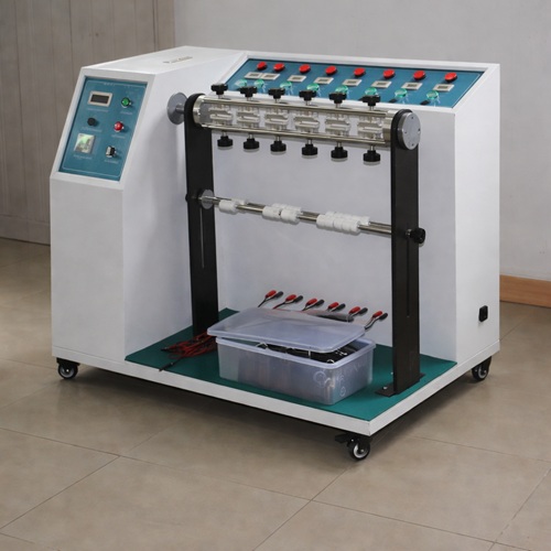 门测试插头引出线及电线之耐折强度。试法是将试料固定在夹具上,并加一定荷重,试验时