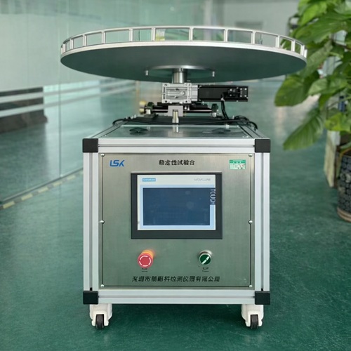 符合 GB9706.1-2020《医用电气设备 第 1 部分:基本 安 全 和 基 本 性 能 的 通 用 要求 》 第 9.4.2.1 及 9.4.2.2 条款。用于 ME 设备需要在 5°或 10°的倾斜地面是否会发生失衡现象的验证,考核其稳定性能。通过触摸屏预置倾斜角度,启动后伺服电机自动动作实现不同的角度倾斜,达到角   度后将测试样品放置台面,试样不应失衡。