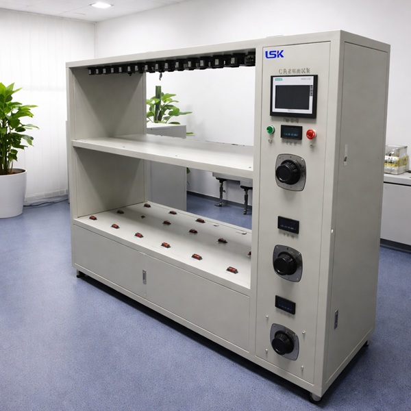 灯具老化测试架符合GB7000.1-2015美国能源之星标准要求,设备具有断路检测、短路检测等故代检测功能,并记录保存故障原因、发生故障时间及已完成的试验次数,同时依据不同的故障产生不同的声光报警。灯具老练测试架