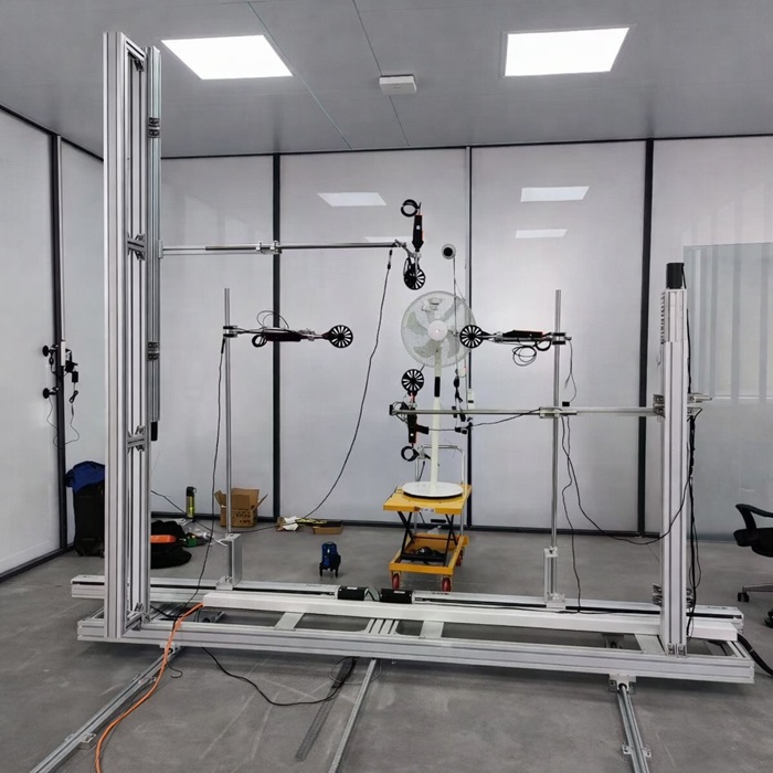 3、风速表的叶片平面与被试电风扇的扇叶平行,距离为被试电风扇扇叶直径的三倍;增加测试装置定位机构,可以自动定位。