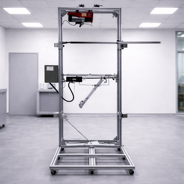 底座采用高强度铝型材井字连接,稳重便于运输,整机支架采用四立柱龙门结构,顶部装有卷扬机,配合译码器准确定位升降高度;